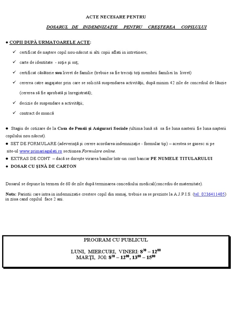 Dosarul De Indemnizaţie Pentru Cresterea Copilului