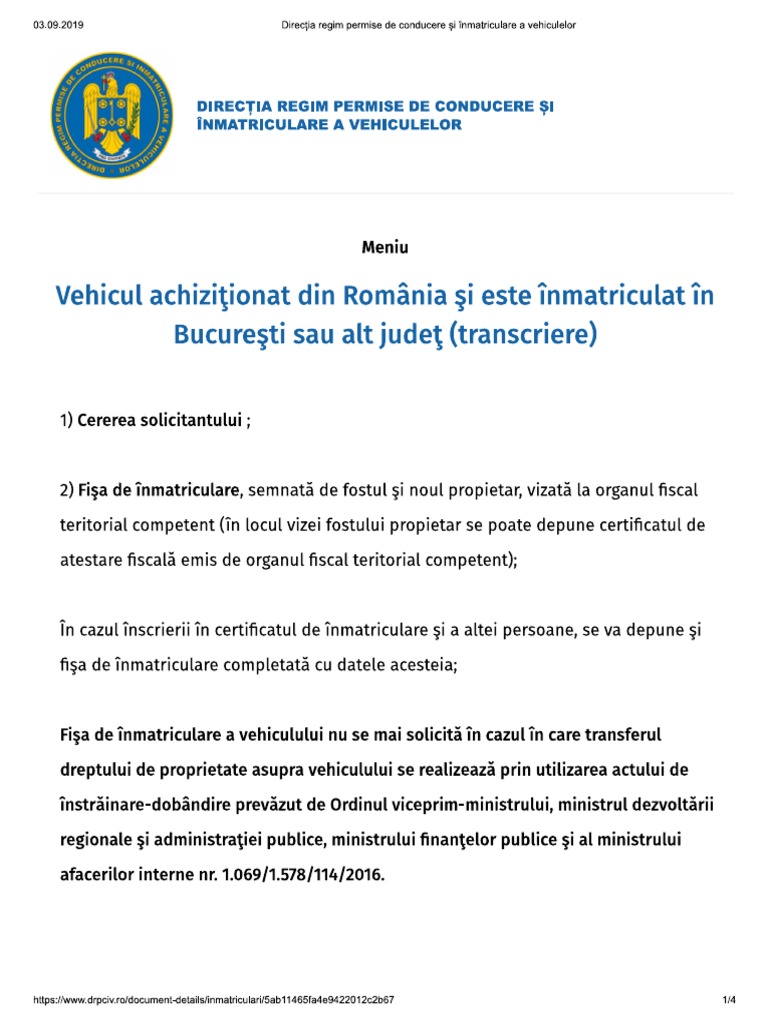 Direcția Regim Permise De Conducere și Inmatriculare A Vehiculelor