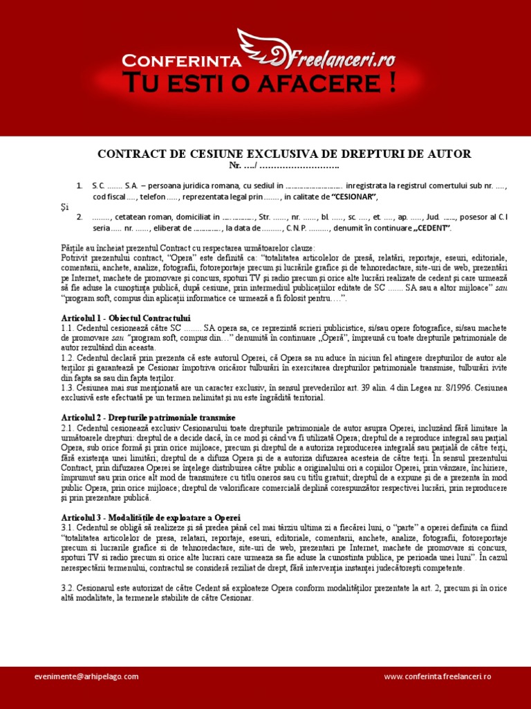 Contract De Cesiune Exclusiva De Drepturi De Autor