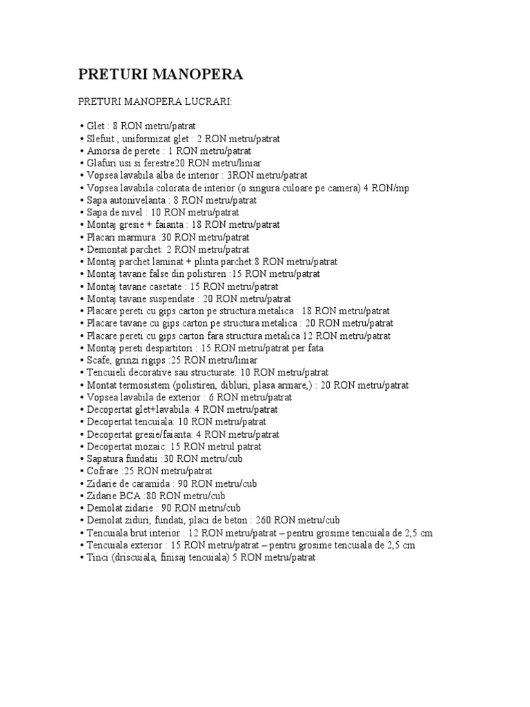 Lista Preturi Manopera Constructii Finisari Fisker Constructii Fisker Constructii Finisari Interioare