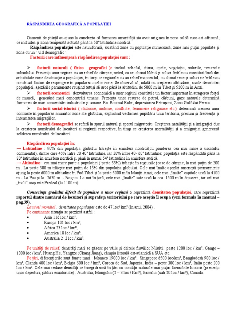 Factorii Repartiţiei Populaţiei Fizico Geografici Istorici Demografici Economici