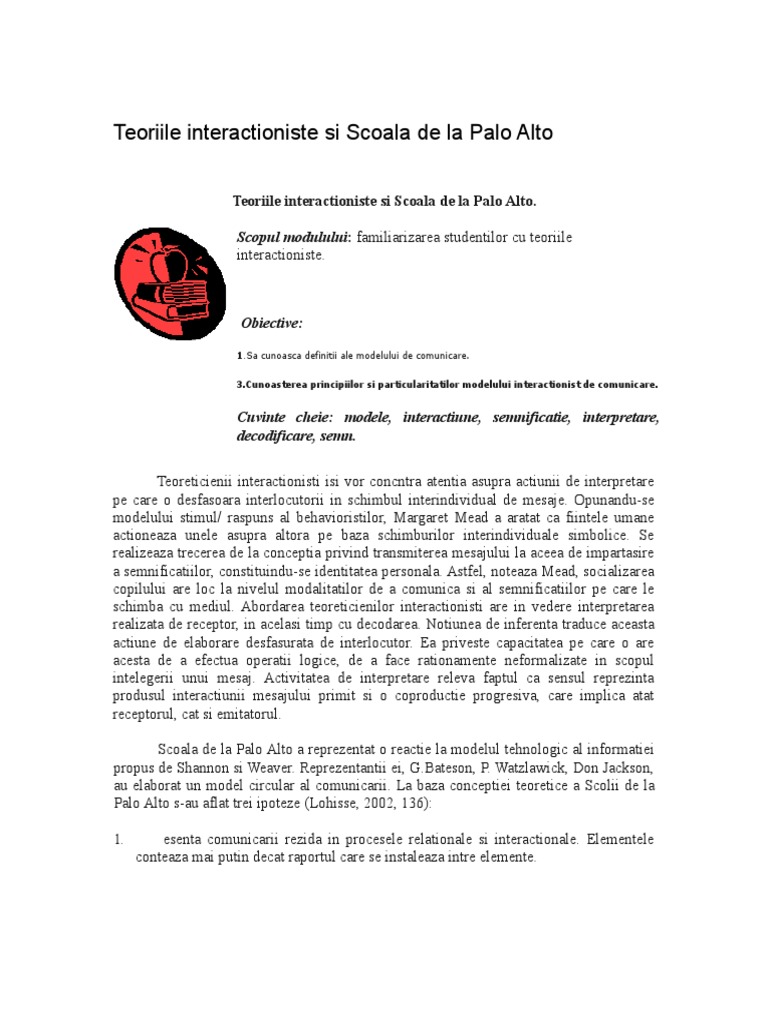 Teoriile Interactioniste Si Scoala De La Palo Alto