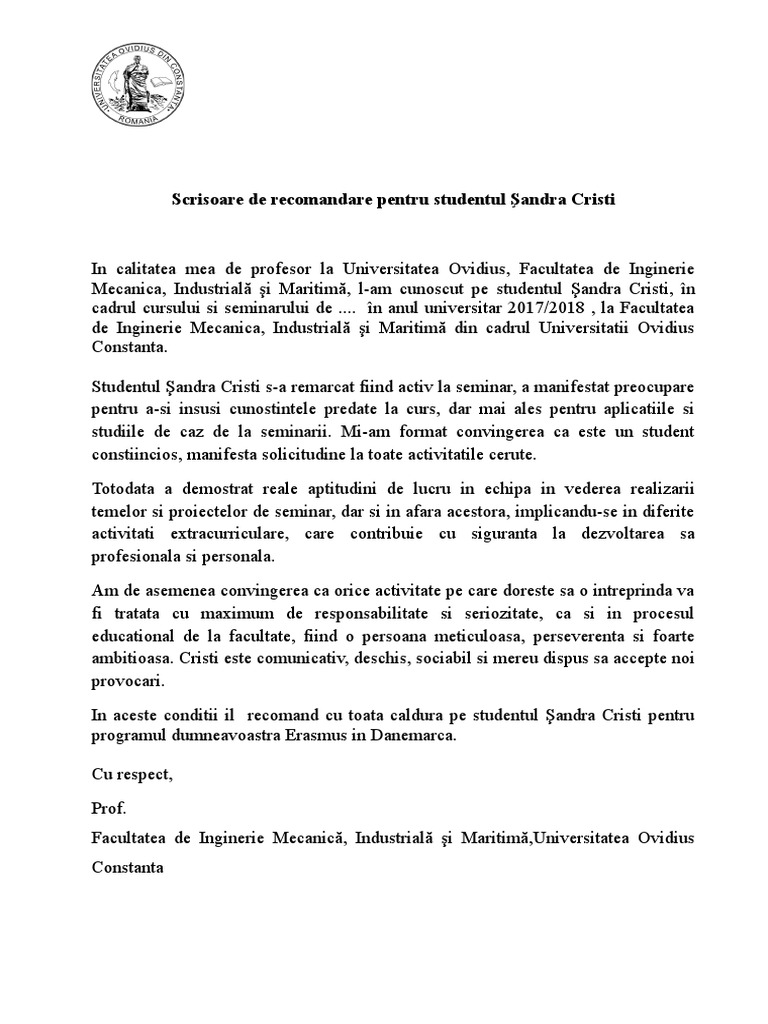 Model Scrisoare De Recomandare Bursa Erasmus Din Partea Profesorului Doc